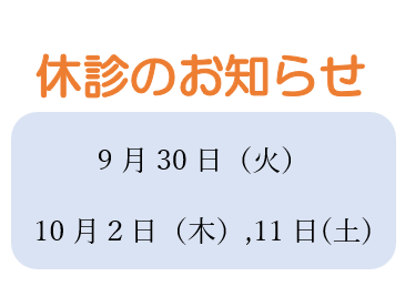 9月後半~10月前半の臨時休診
